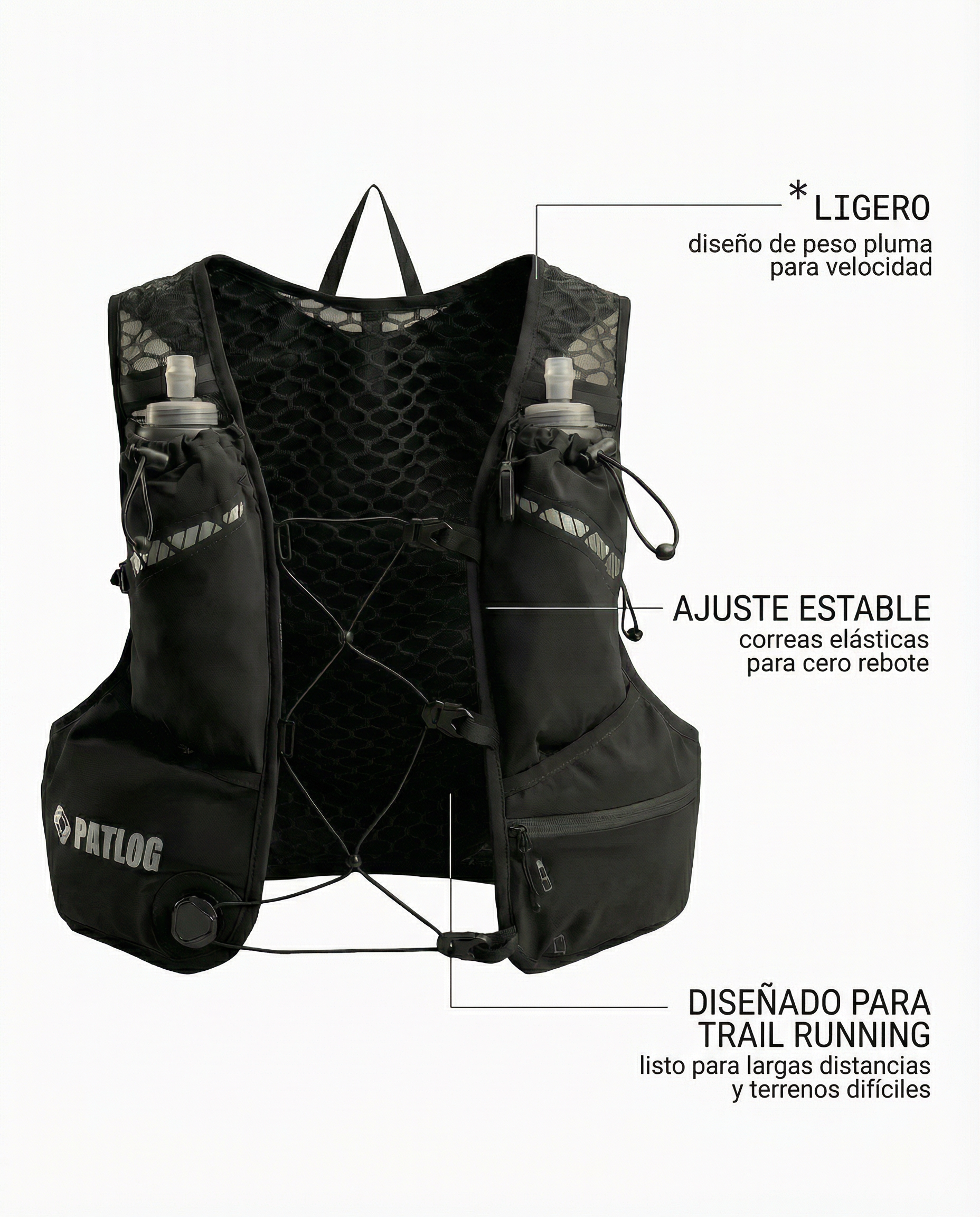 Esta mochila de trail running está diseñada para corredores que buscan ligereza, comodidad y estabilidad en cada salida. Su diseño tipo chaleco se ajusta al cuerpo y evita el rebote, permitiéndote correr con total libertad tanto en trail como en running en carretera.